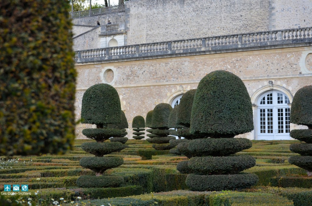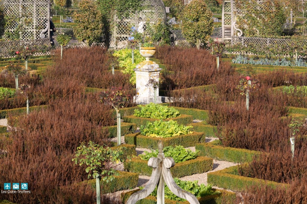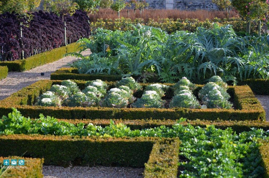 Nous avons privilégié la visite des jardins très réputés de Villandry à celle du château. Ils sont le fruit d’une reconstitution patiente effectuée dès 1906 par le docteur Joachim Carvallo à partir de planches et de textes anciens de l’architecte Jacques Androuet du Cerceau, traitant alors d’un jardin de la Renaissance typique du xvie siècle.