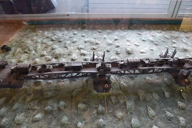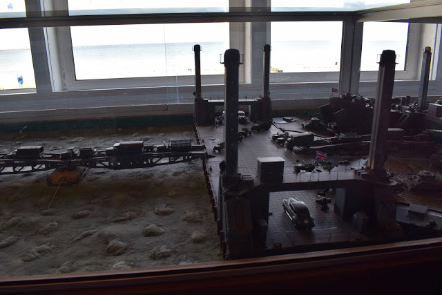 Après une longue marche sur la plage, nous retournons au centre ville pour découvrir le Musée du Débarquement. A travers des films, des maquettes mais aussi un guide, nous comprenons mieux comment un énorme port artificiel verra le jour.
