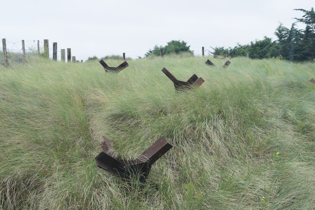 Sur la plage, une œuvre baptisée « Les Braves ». Erigé sur le sable de la plage d’Omaha Beach, en hommage aux 35.000 soldats alliés qui débarquèrent sur cette plage, le 6 juin 1944, et aux 3.000 victimes, morts, disparus et blessés au soir du D-Day, le monument « Les Braves », œuvre du sculpteur Anilore Banon, dont les voiles d’acier se dressent au pied des marches du monument Signal de Saint-Laurent-sur- Mer, a été inauguré le 5 juin 2004, à la veille du 60ème anniversaire du débarquement de Normandie.