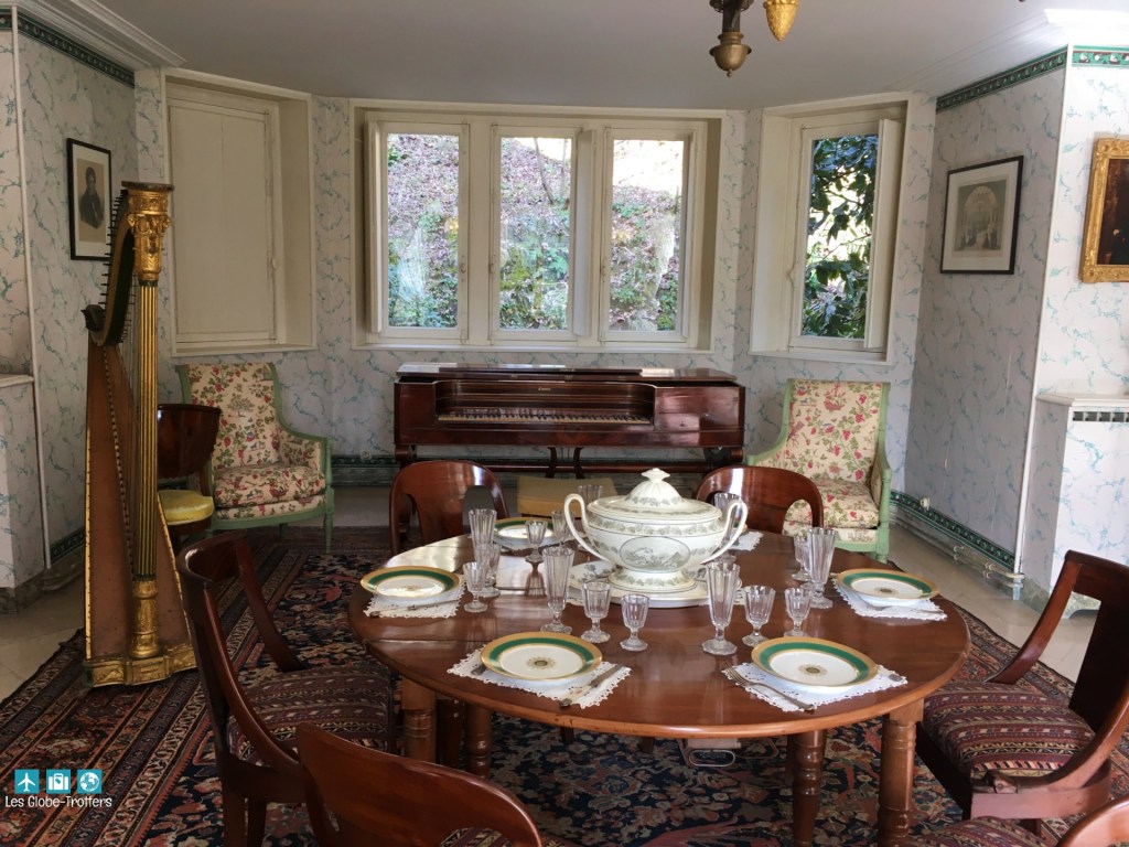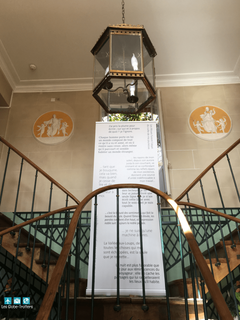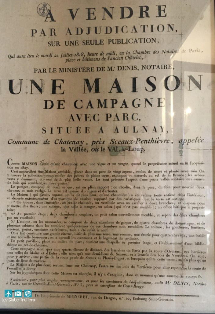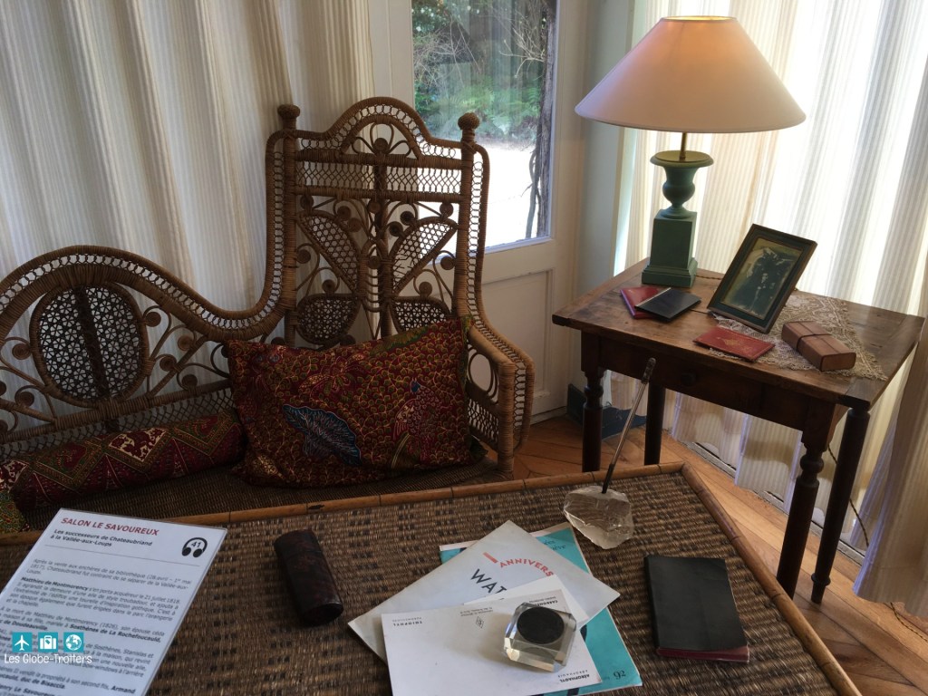 Avant de visiter la maison, un guide nous raconte l’histoire de la maison et du parc, l’histoire et la passion pour la nature, les arbres. Chateaubriand et son épouse, Céleste, transformèrent également le verger en un grand et magnifique parc destiné à recevoir des essences rares rappelant les voyages de l’écrivain : chênes d’Armorique, cyprès chauves d’Amérique, platanes de Grèce, cèdres du Liban, pins de Jérusalem. L’Impératrice Joséphine leur fit don de plusieurs arbustes parlis lesquels un magnolia à fleurs pourpres, seul spécimen connu en France avec celui de Malmaison.