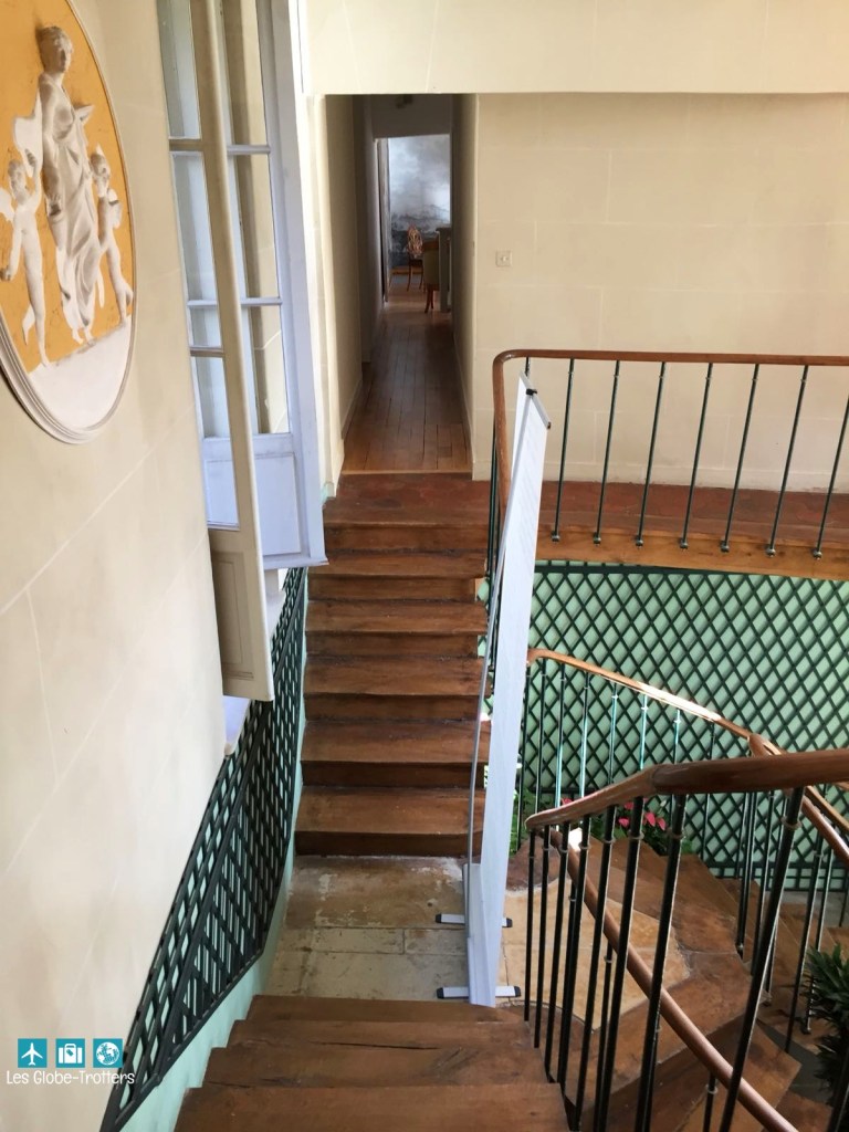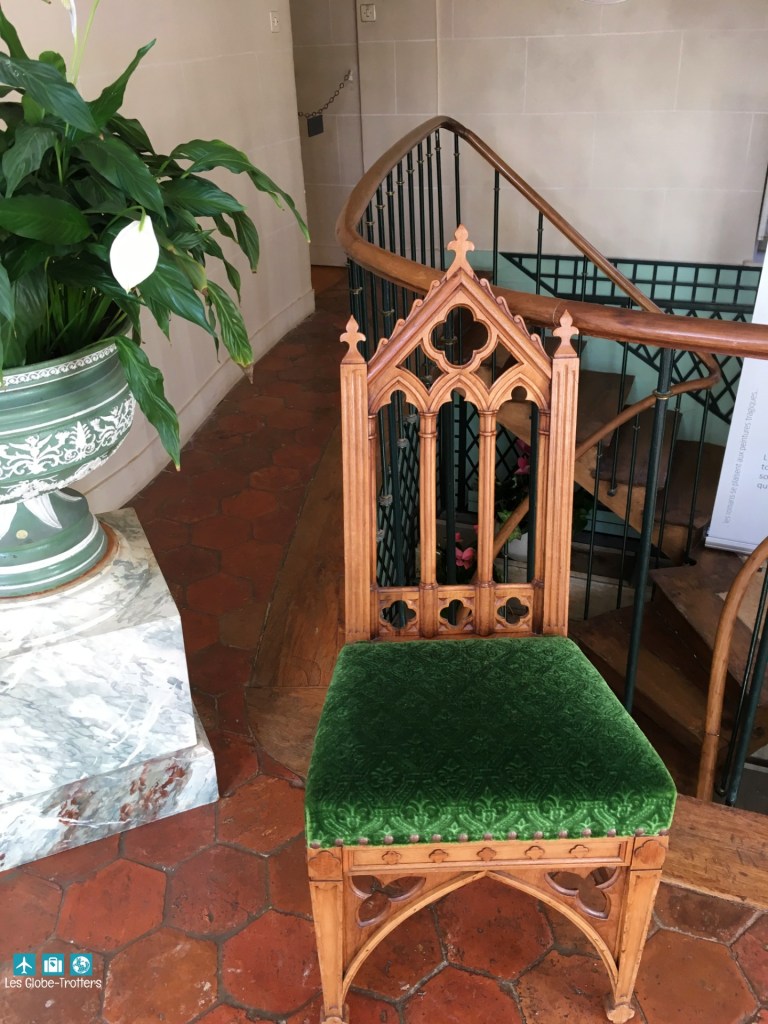 je me souvenais d’avoir passé par Athènes. Mon projet était d’ajouter une tour ; en attendant, je simulais des créneaux sur le mur qui me séparait du chemin ; je précédais ainsi la manie du Moyen Age qui nous hébète aujourd’hui ». Il introduit également l’un des premiers exemples du style troubadour en France en installant des fenêtres gothiques. A l’intérieur de la maison, la principale transformation fut l’escalier à double volée conçu « pour y mettre des fleurs » .