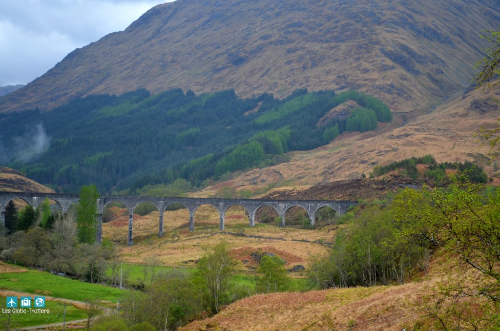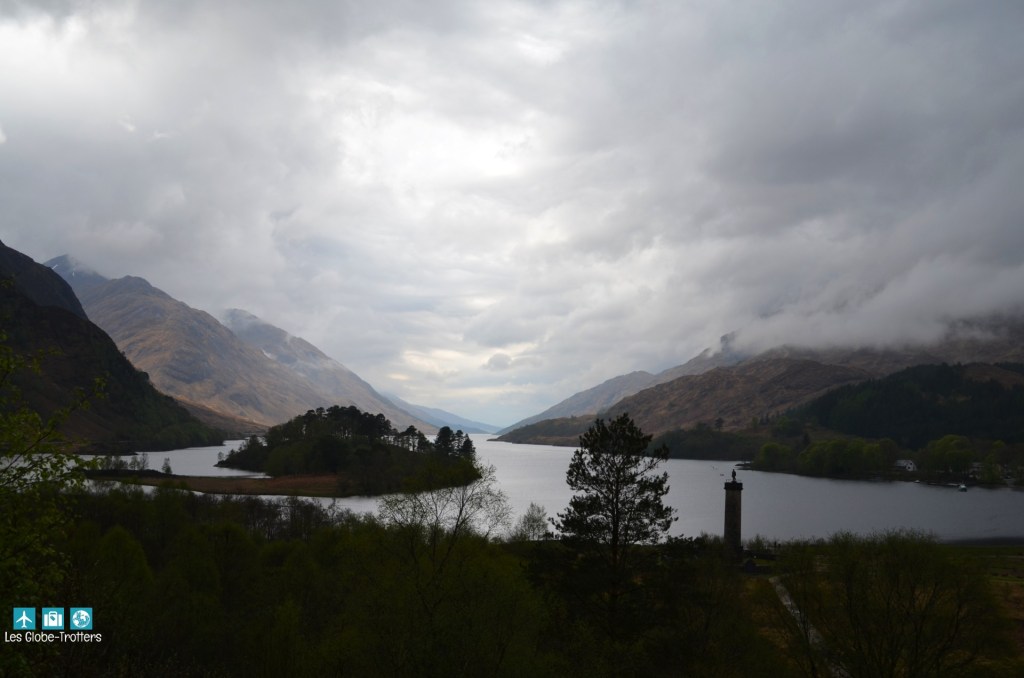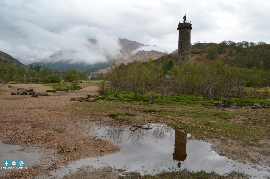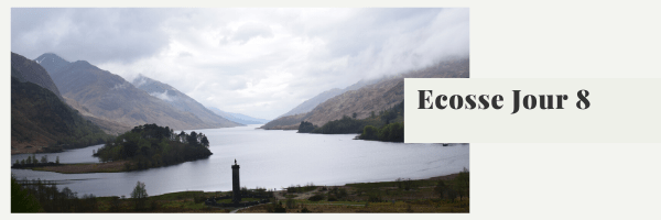 Aujourd’hui direction le célèbre village de Glenfinnan. Nous avons choisi de ne pas prendre le ferry de Armadale à Mallaig mais de refaire le parcours par la route. Ceci nous permettra de refaire un petit arrêt non prévu mais tellement plaisant à Eilean Donnan Castle. La route est ensuite assez longue pour arriver au village de Glenfinnan. Glenfinnan, le village ou tout a commencé ! C’est précisément à cet endroit que le prince Charles Édouard Stuart, « Bonnie Prince Charlie« , a levé son étendard au début des rébellions jacobites de 1745. Un monument est érigé à cette occasion en 1815 pour célébrer l’événement à la pointe du Loch Shiel. Ceci dans un décors féerique.