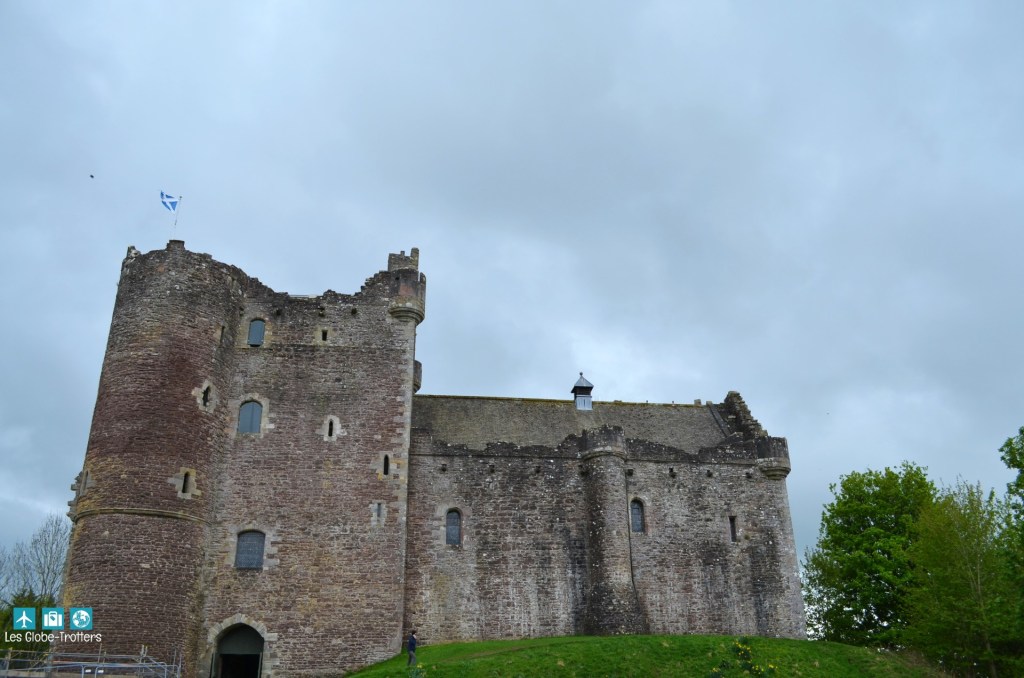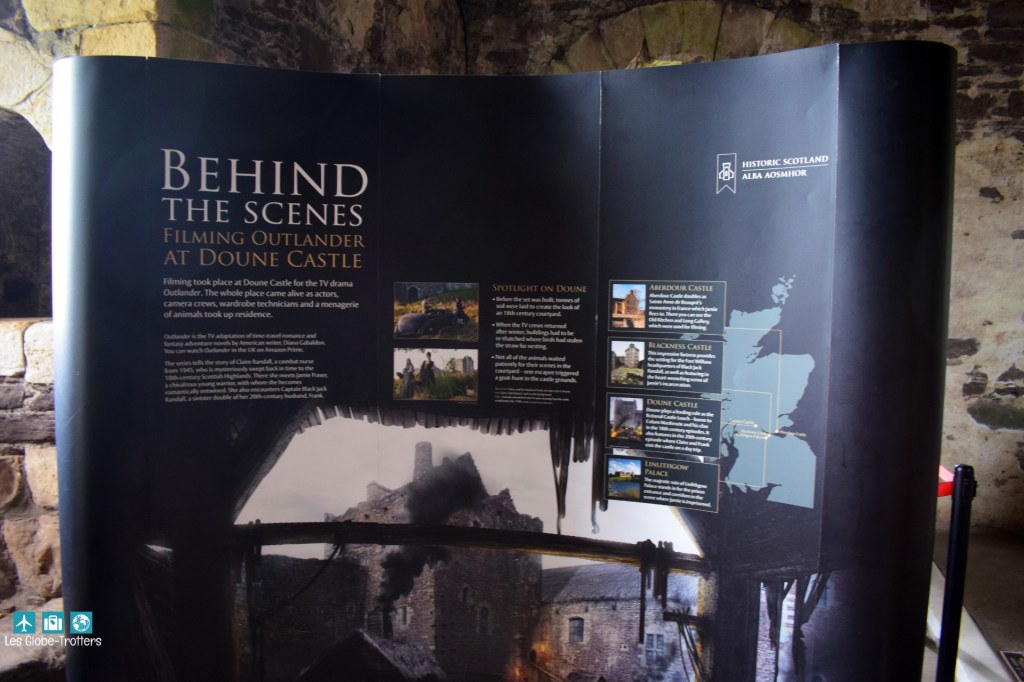 Nous arrivons vers midi à Doune Castle qui joue un rôle essentiel dans la série Outlander puisqu’il incarne le Castle Leoch, où résident Colum MacKenzie et son clan dans les épisodes du XVIIIe siècle. Ce château est un château médiéval, bâti principalement au XIV ème siècle. Il fut autrefois résidence royale.