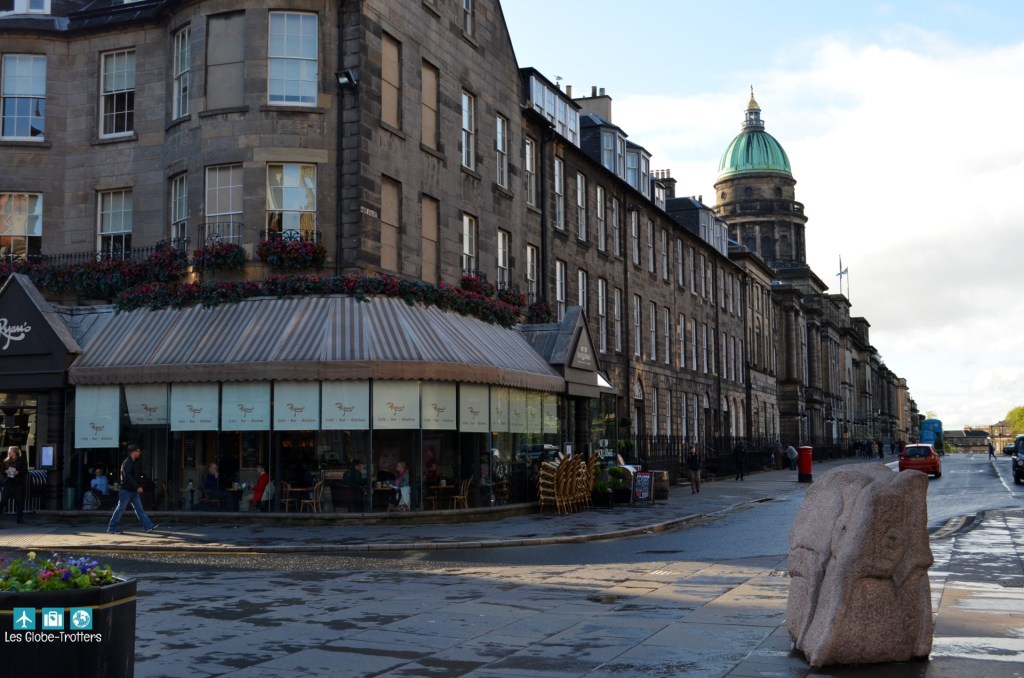 Nous prenons ensuite la direction de notre hôtel à Edimbourg. Nous avons choisis le Novotel Edinburgh Park qui se situe à une vingtaine de minutes du centre mais avec le tram juste a coté de l’hôtel ce qui permet de circuler facilement dans Edimbourg. Nous avions réservé bien en avance ce qui permet d’avoir des tarifs intéressant. Un très bon accueil à l’hôtel. Nous avons eu un petit soucis avec notre chambre et Laeticia l’a immédiatement résolu. Au petit déjeuner, l’accueil de Abram est fort agréable. Une fois bien installés, nous partons nous promener en fin d’après midi dans le centre d’Edimbourg en tram. Nous nous baladons à travers les rues et les parcs, et adorons cette architecture.