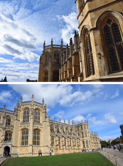 La chapelle Saint-Georges, construite au XVe siècle, est considérée par l’historien John Martin Robinson comme « l’une des plus grandes réussites de l’architecture gothique anglaise ». Cette chapelle est une magnifique chapelle où de nombreux mariages princier ont été célébrés. C’est dans cette chapelle que le le Prince Charles a épousé Camilla Parker Bowles, et c’estsurtout là que la cérémonie du mariage du Prince Harry et de Meghan Markle, Duc et Duchesse de Sussex a eu lieu en mai 2018, en présence de la Reine Elizabeth II,  de plusieurs membres de la famille Royale et de nombreuses stars du showbizz.