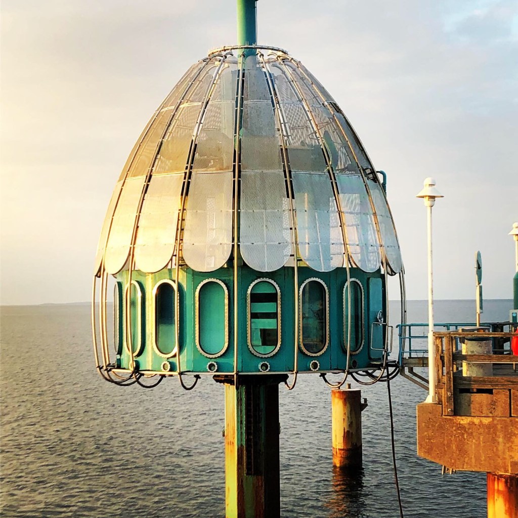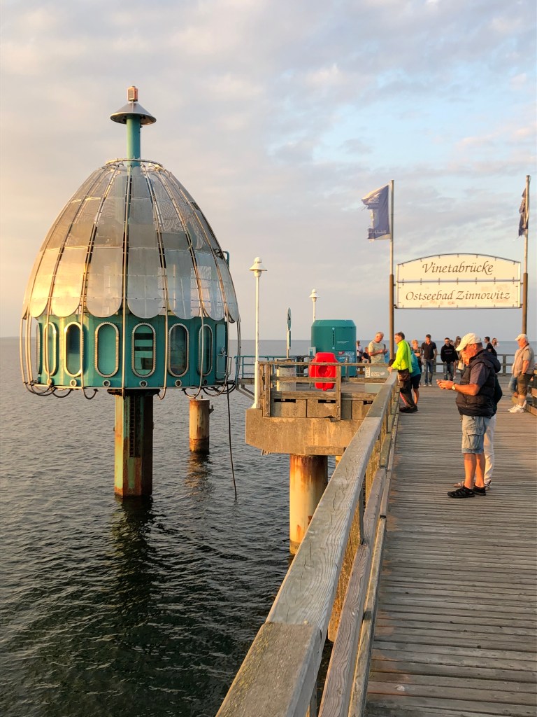 Au bout du ponton se trouve un « Tauchgondel« , littéralement la gondole plongeuse. Cet appareil digne de 20000 lieux sous les mers permet de plonger en profondeur. Mais attention, la mer baltique n’ayant que très peu de sel par litre, et beaucoup de plancton, l’eau est trouble et vous ne verrez pas grand chose.