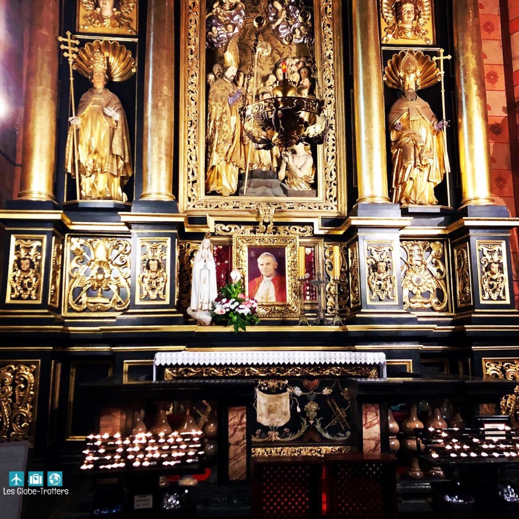 Elle est particulièrement réputée pour son retable de bois (décors en bois derrière l’autel). Avec plus de 200 figures sculptées et 12 mètres de long, il est le plus grand d’Europe. Hélas, des travaux étant réalisés dans la basilique au moment de notre passage, nous n’avons malheureusement pas pu en profiter pleinement à cause des échafaudages.