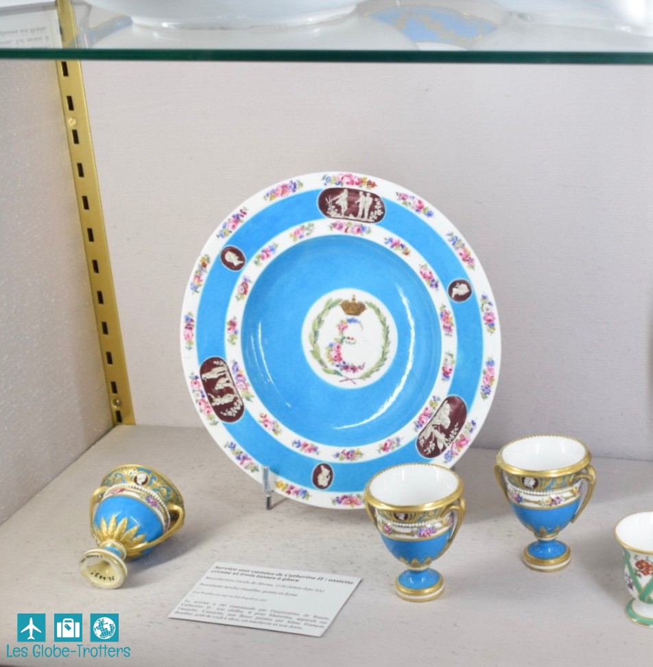 La manufacture de Sèvres a été fondée en 1740 à Vincennes à l’origine puis a déménagée en 1756 à Sèvres dans un bâtiment construit à la demande de Madame de Pompadour pas trop loin de son château de Bellevue (à Meudon).