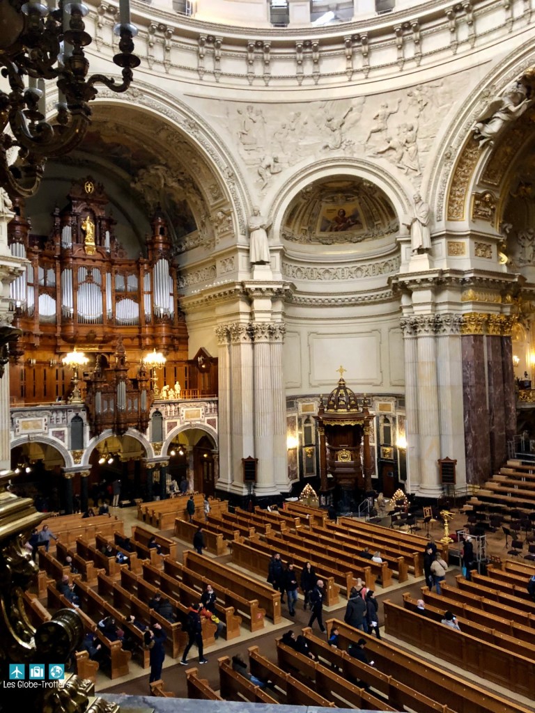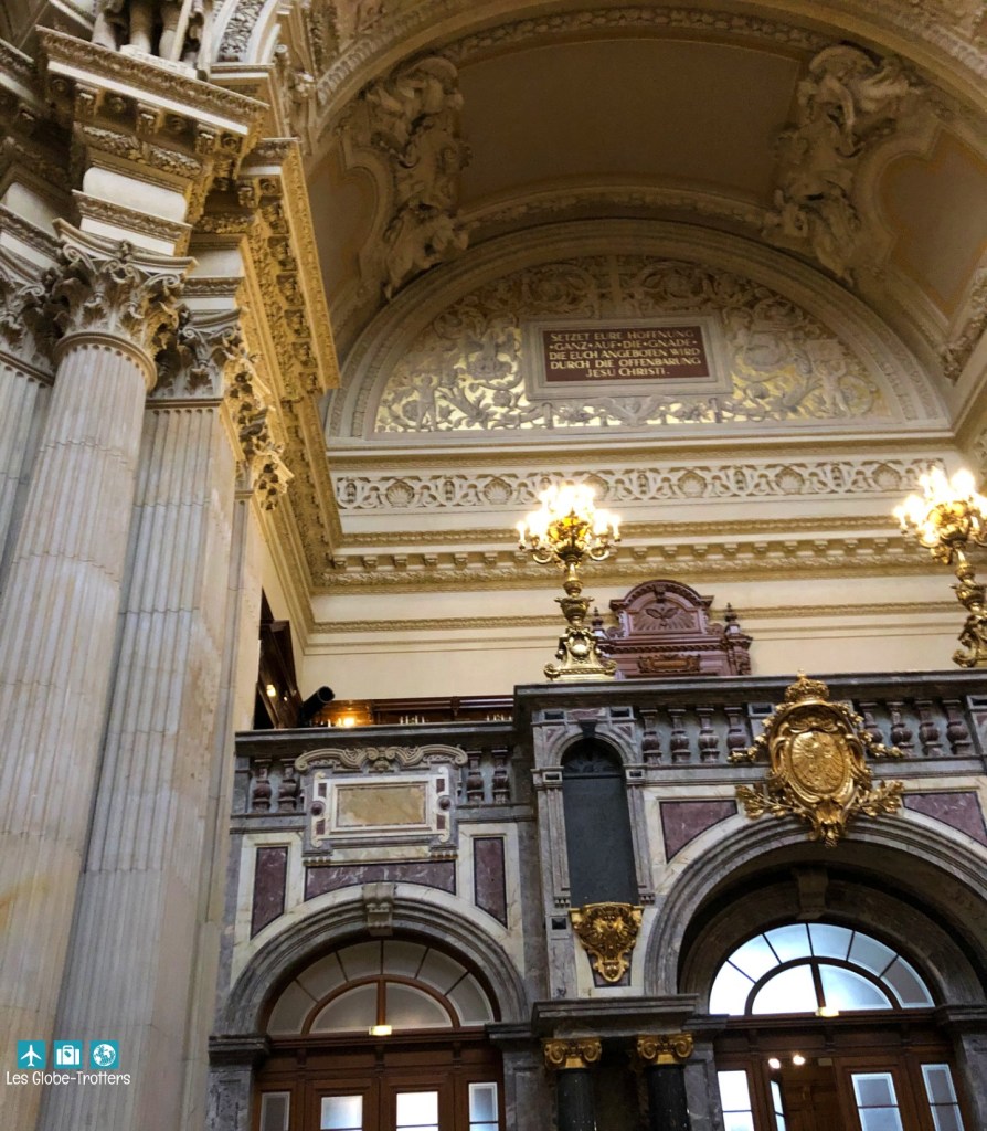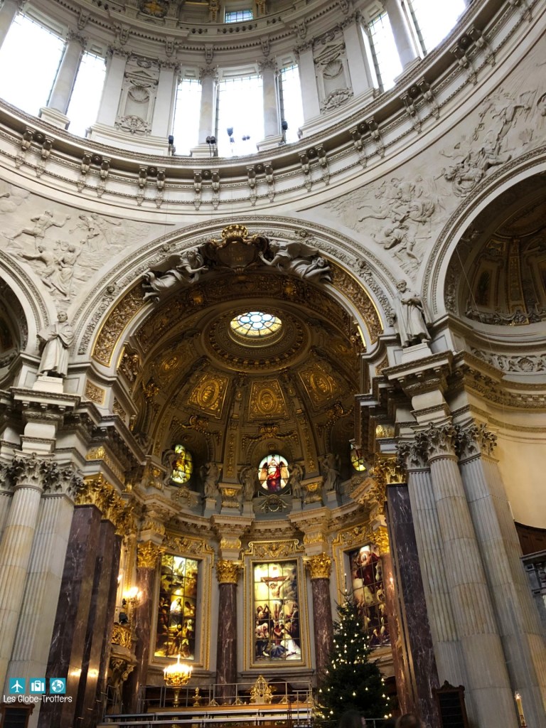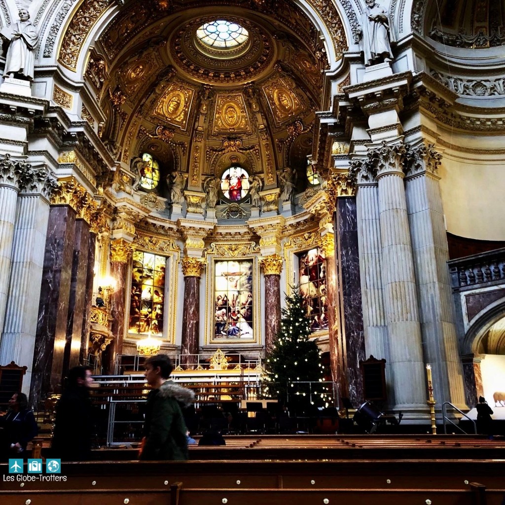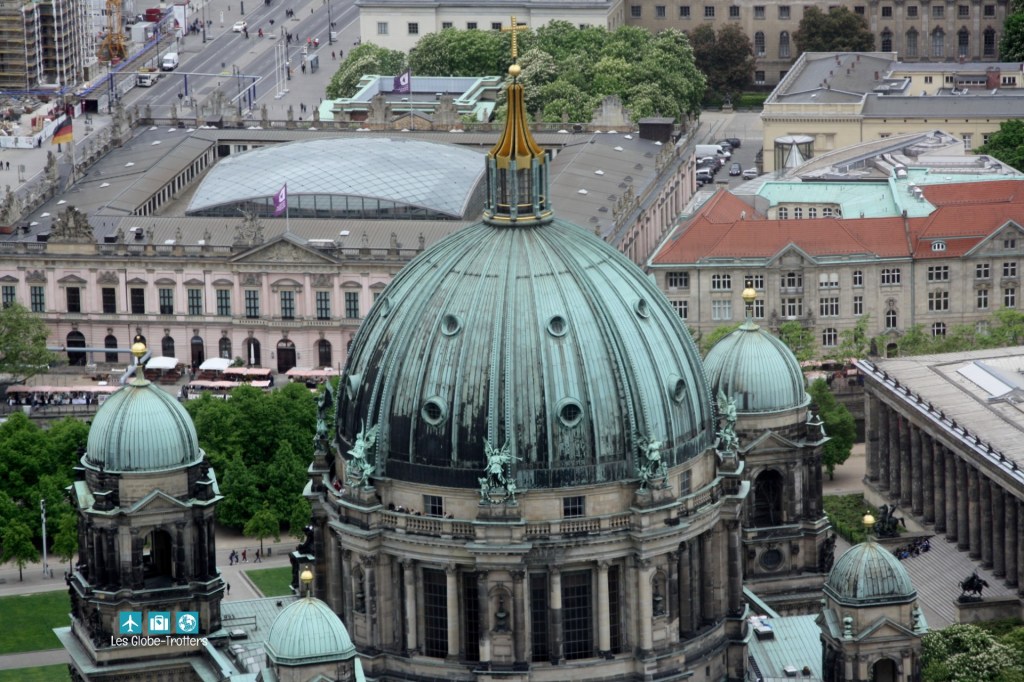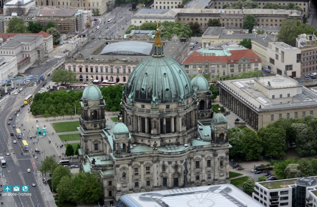 Le Berliner Dom : La cathédrale de Berlin. Le Berliner Dom est la plus importante cathédrale protestante de Berlin. Situé entre la porte de Brandebourg et Alexanderplatz, sur l’ile aux musées, le monument a été construit au 18ème siècle. Cette cathédrale, haute de 116 mètres est reconnaissable de loin grâce a ses dômes verts.