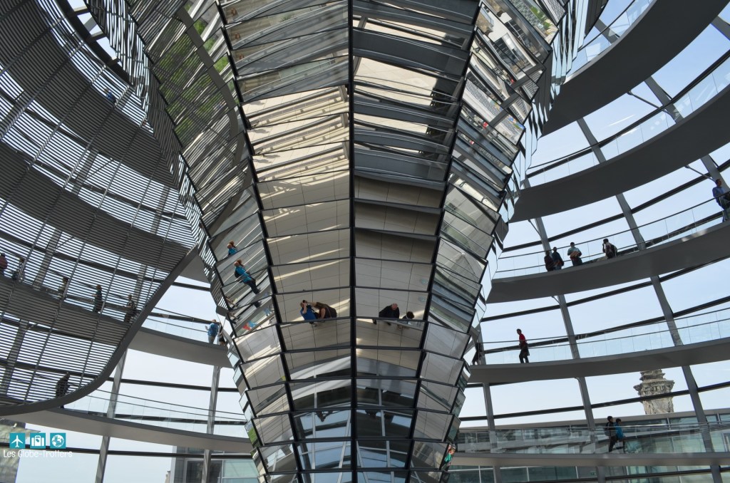 Lors de la visite, nous pouvons monter en haut du dôme central et avoir ainsi une vue splendide sur Berlin.
