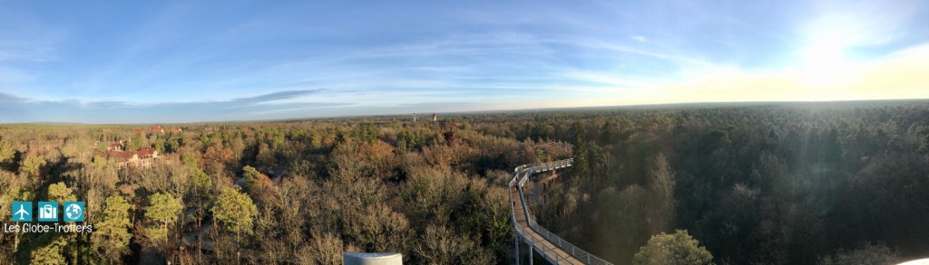 Situé à une soixantaine de kilomètres de Berlin, le complexe Baum & Zeit installé à Beelitz nous offre une promenade en haut des cimes. C’est un concept assez connu en Allemagne, il en existe une petite vingtaine. Nous avions déjà eu l’occasion de découvrir en Saarland le Baumwipfelpfad Saarschleife qui implanté dans la foret nous offrait une vue imprenable sur la rivière Sarre.