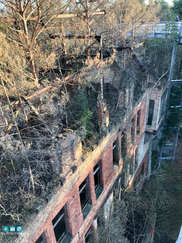 Du 3ème palier, une passerelle nous permet de nous déplacer dans la foret et de constater que la nature elle n’abandonne pas les lieux et au contraire s’installe même sur les toits de ces immeubles abandonnés.
