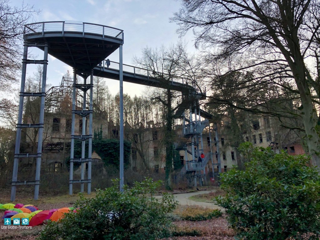 La tour haute comme un immeuble de 5 étages nous permet d’avoir, une fois en haut, un vision à 360 degrés de cette immense forêt et une vision quasi complète de ce sanatorium abandonné.