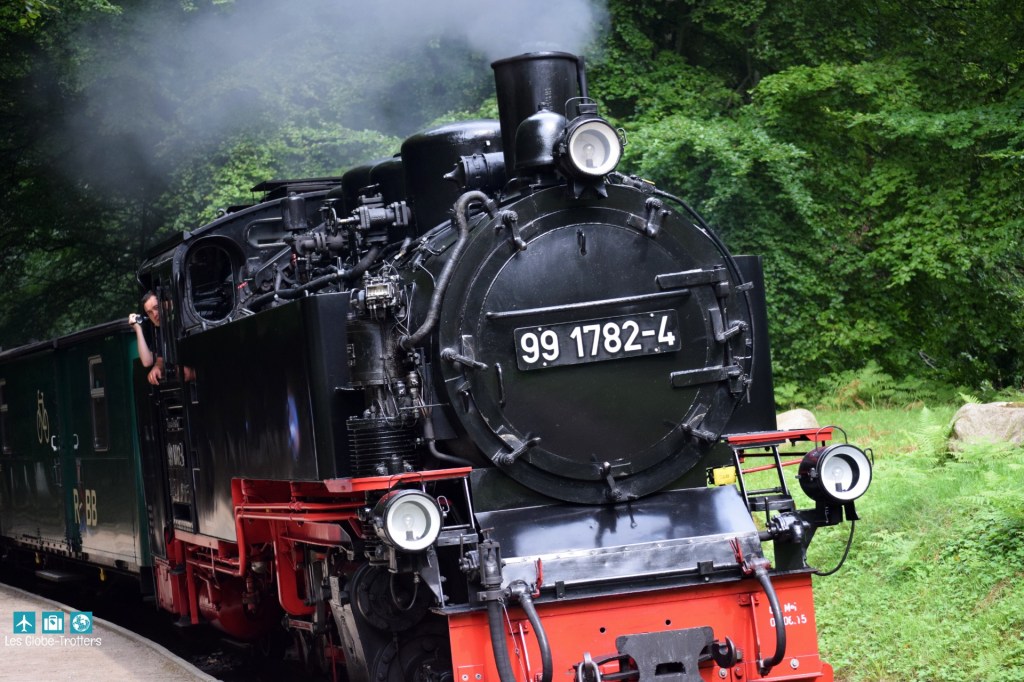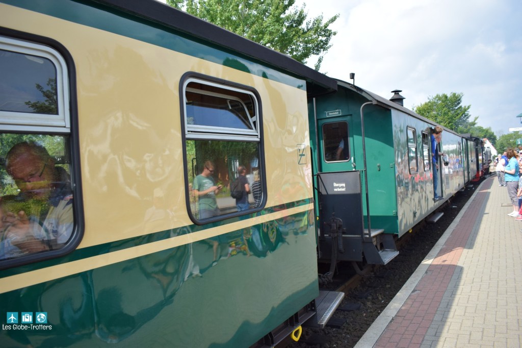 Troisième jour de notre road-trip, nous prenons un petit déjeuner fort agréable avec la vue sur le petit lac de l’hôtel. Le personnel de l’hôtel est vraiment charmant. Nous reprenons la route direction Binz pour un petit périple insolite. Nous allons visiter le « Jagdschloss Granitz« . Pour parvenir à ce château, nous devons prendre un train historique qui nous laissera en pleine forêt.