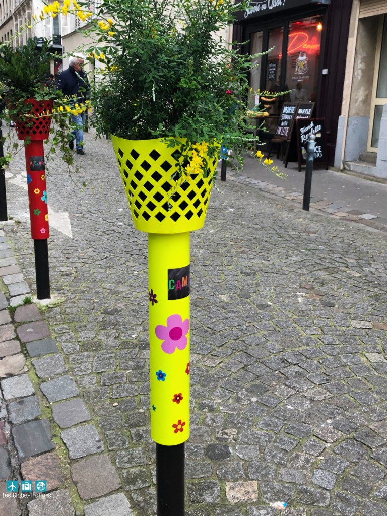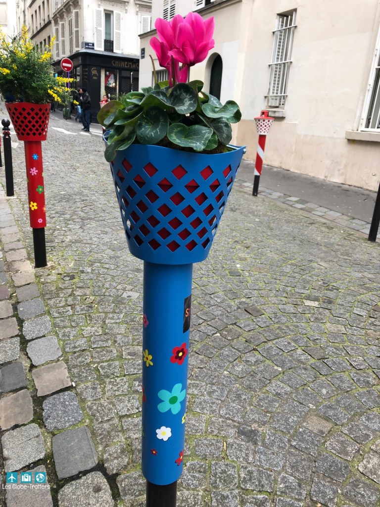 Dès la sortie du métro Abbesse, vous ressentez une atmosphère de village. Sur la petite place vous retrouvez un manège posé sur des pavés. En remontant la rue la Vieuville, vous découvrez l’art floral posé sur les poteaux de protection des trottoirs. Ensuite vous pouvez au fil des rues qui mènent au sacré cœur découvrir des œuvres peintes sur les murs.