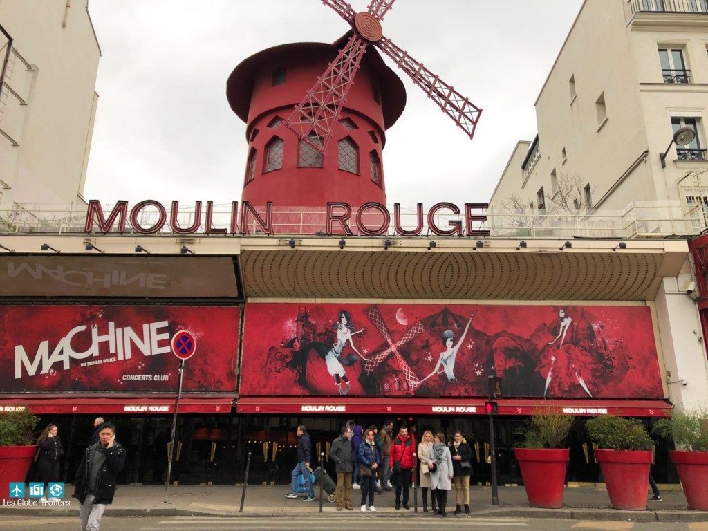 Juste en bas de la rue Lepic, tout de suite à droite, sur le boulevard de Clichy, se trouve un autre moulin célèbre qui illumine également le quartier : le Moulin Rouge ! Il est le temple du French Cancan, et est devenu un lieu important des spectacles parisiens.