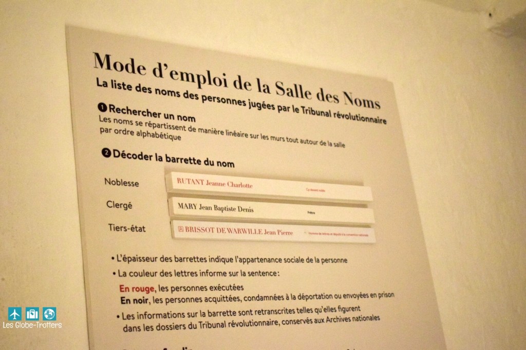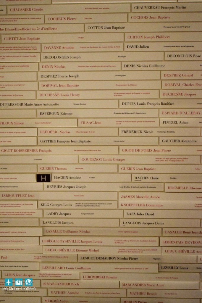Cette salle présente le nom de plus de 4000 personnes jugées par le Tribunal Révolutionnaire entre 1793 et 1795.