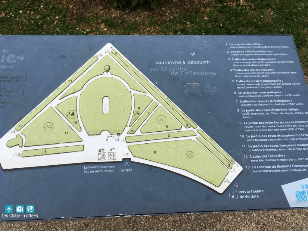 A l’intérieur de ce parc se trouve la Roseraie du Val-de-Marne. Ce jardin à la française de 1,5 hectare est devenu un jardin public mondialement connu. La Roseraie du Val-de-Marne est la première roseraie moderne. En 1894, Jules Gravereaux entamait sa collection de roses et réussit à réunir plus de 8 000 espèces et variétés. Aujourd’hui, près de 2 900 variétés forment 13 collections : roses sauvages, cultivées, roses d’hier et d’aujourd’hui, roses d’ici et d’ailleurs… Plus de 11 000 pieds nous sont présentés.