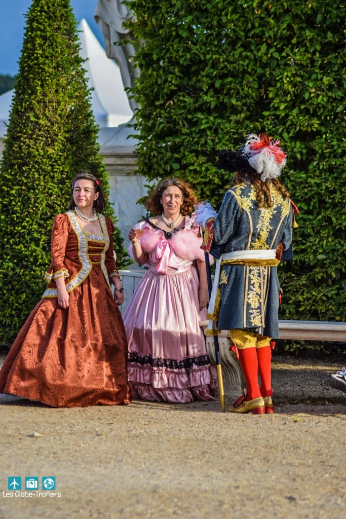 C’est sous un joli soleil que s’ouvre les portes du jardins vers 20h00. Cette année, et aussi pour cause de pandémie, cette première date permet à ceux qui le souhaitent de venir en costume du XVIII ème siècle pour assister à la sérénade royale qui se déroule avant les grandes eaux et également aux grandes eaux nocturnes. L’occasion donc pour nous de découvrir et profiter de ces costumes magnifiques.