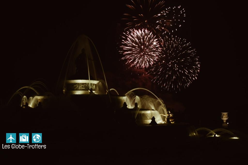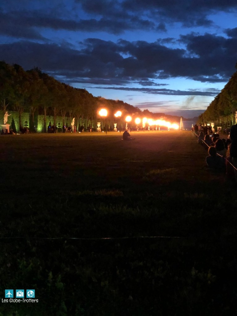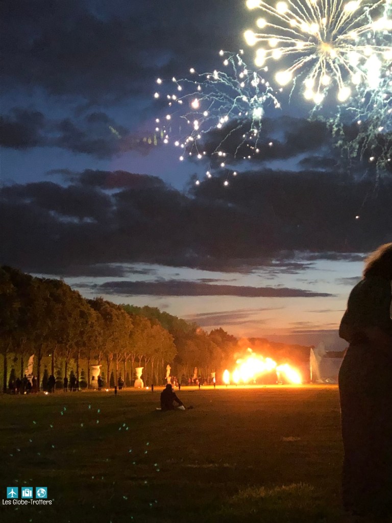 Vers 22h30, tout le monde commence à se regrouper vers le parterre de Latone etle haut de l’allée royale pour assister au spectacle tant attendu. La soirée est couronnée par un immense feu d’artifice magnifiquement mise en scène par la compagnie Le Groupe F.