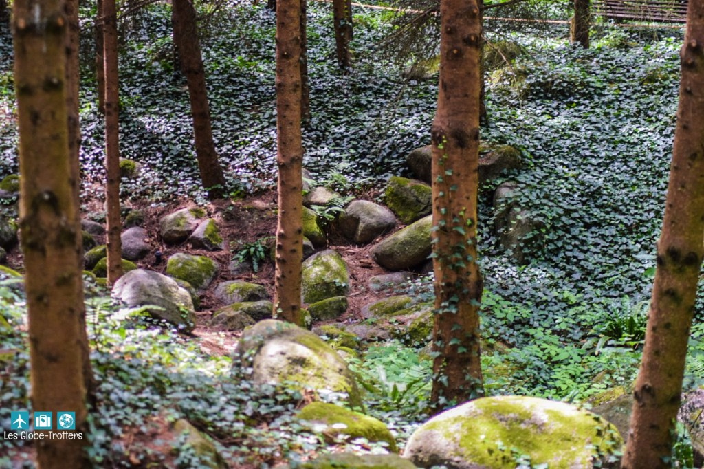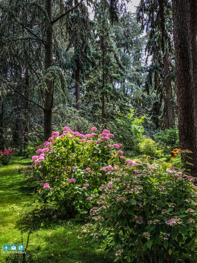 Des collections horticoles de différents pays y dessinent une carte intime et universelle. Les jardins nous emmènent tour à tour dans des paysages inspirés du Japon, avant de nous faire traverser un jardin à la française, puis à l’anglaise. On s’évade dans une forêt des Vosges, une autre plus bleutée, et une troisième dorée.