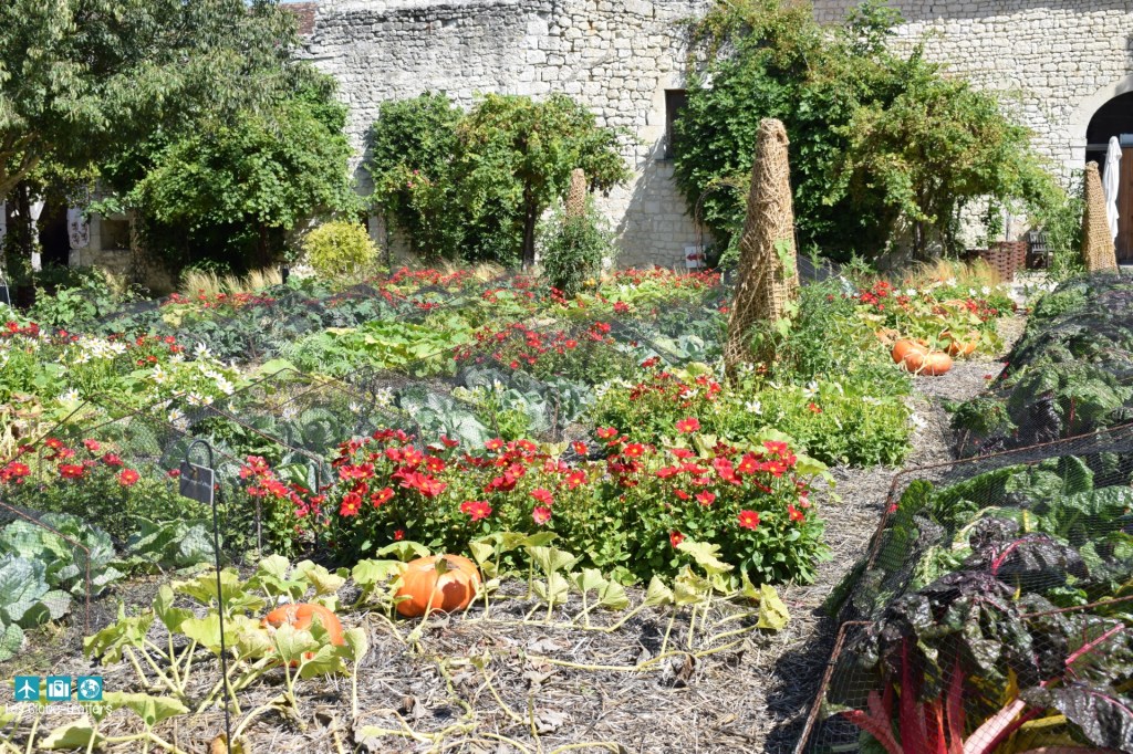 On apprécie également le potager réputé pour sa collection d’une cinquantaine de cucurbitacées et autres légumes.