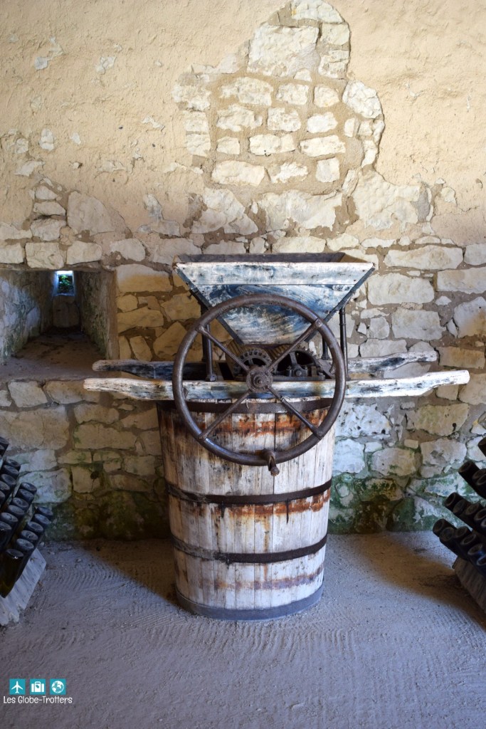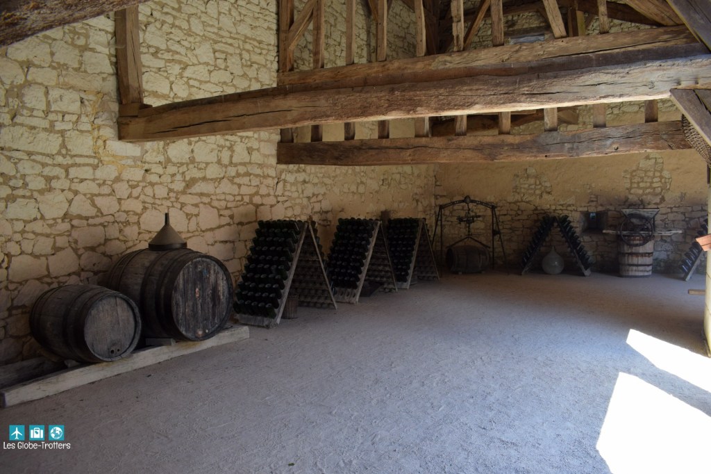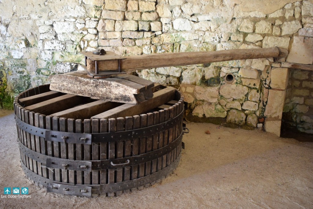 Nous nous dirigeons ensuite en repassant le pont-levis vers le pressoir. C’est un batiment du XVII ème siècle ou le vin du Rivau était produit. A présent, on peut découvrir à travers divers panneaux toute l’histoire de la rénovation du château depuis le rachat par Éric et Patricia Laigneau a qui nous adressons un immense bravo pour toutes les rénovations réalisées en 18 années et pour le formidable domaine actuel.