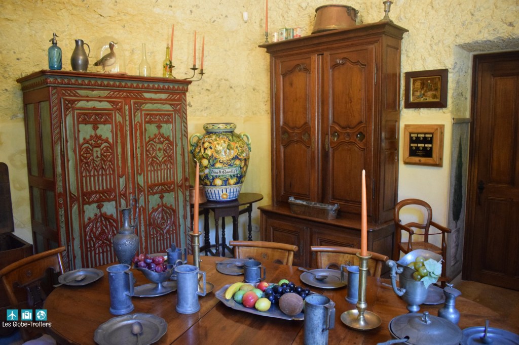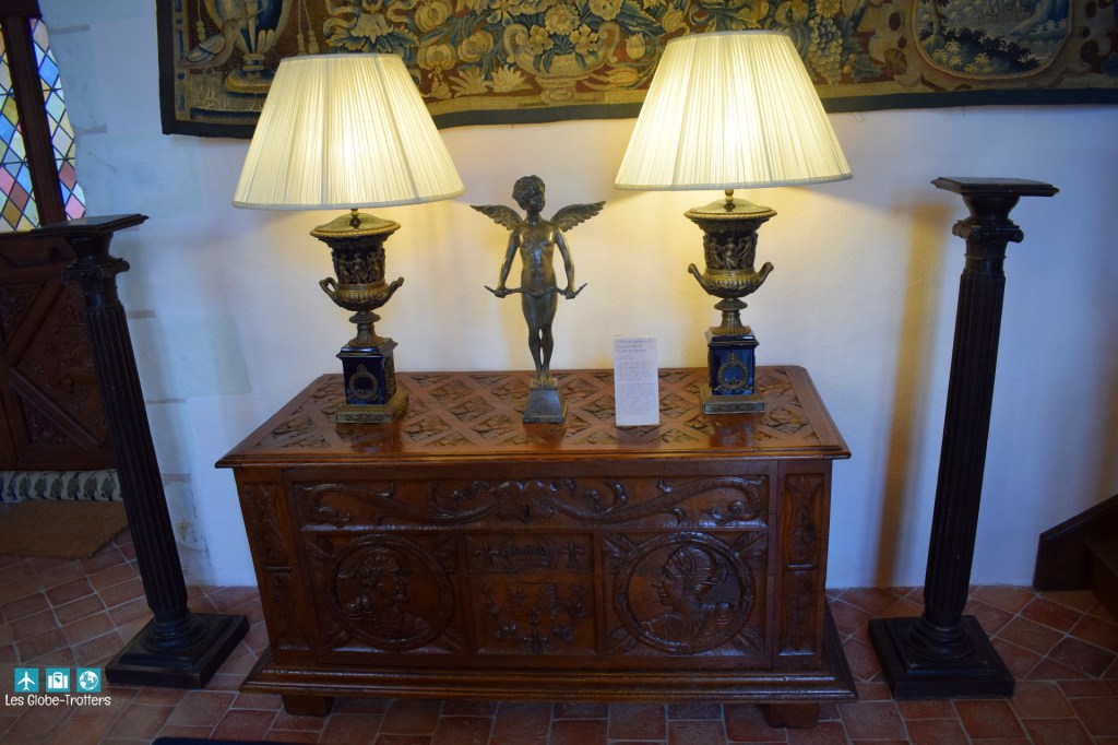 Notre visite se poursuit ensuite dans le château. C’est un formidable palais riche de détails. La première pièce est composée de panneaux nous racontant la seconde vie du château à partir de 2011 et toutes les étapes de la rénovation à travers les années. Ensuite, nous découvrons chaque pièce magnifiquement décorées et meublées. Théâtre de nombreux faits historiques comme la lune de miel de Marie Stuart, les conciliabules de Catherine de Médicis pour déjouer la conjuration d’Amboise, Château Gaillard raconte la vie de la ville royale d’Amboise. Vous y découvrirez également la légende de la Licorne d’Anne de Bretagne, les personnages de la Commedia Dell’arte ou encore un cabinet rempli de curiosités toutes plus stupéfiantes les unes que les autres (météorite de 4 millions d’années, masque de la honte..) et tant d’autres objets du maître jardiniste.