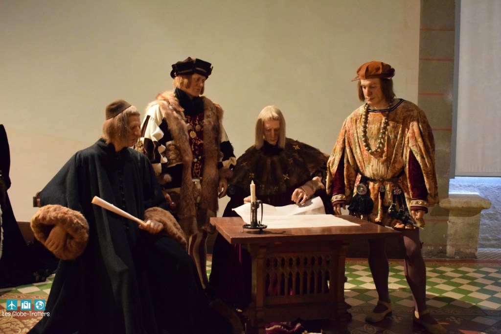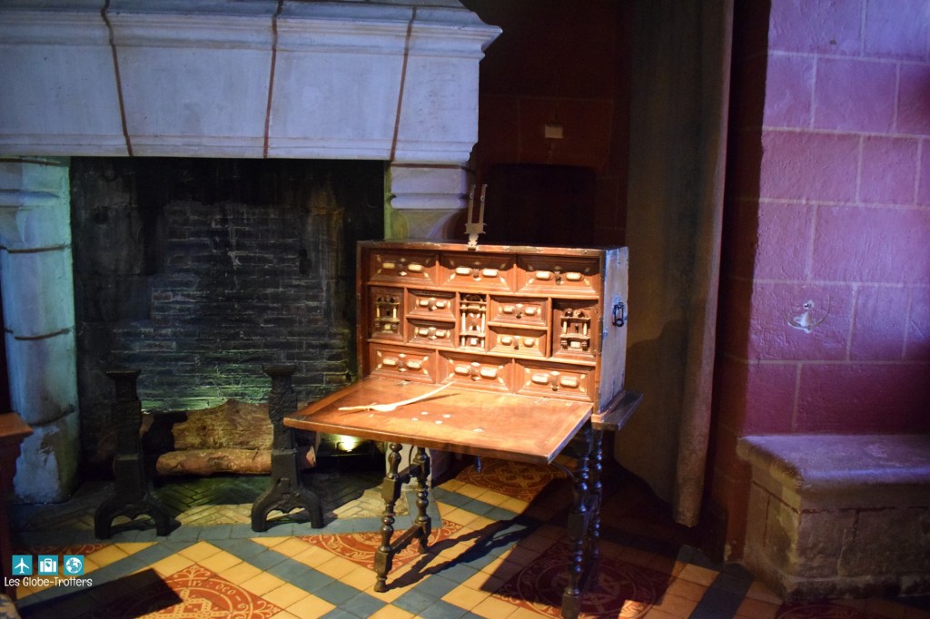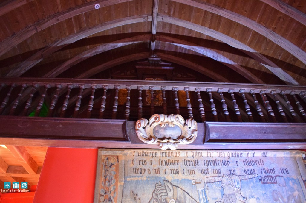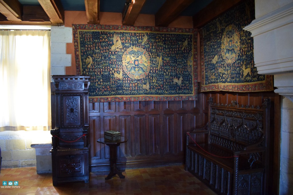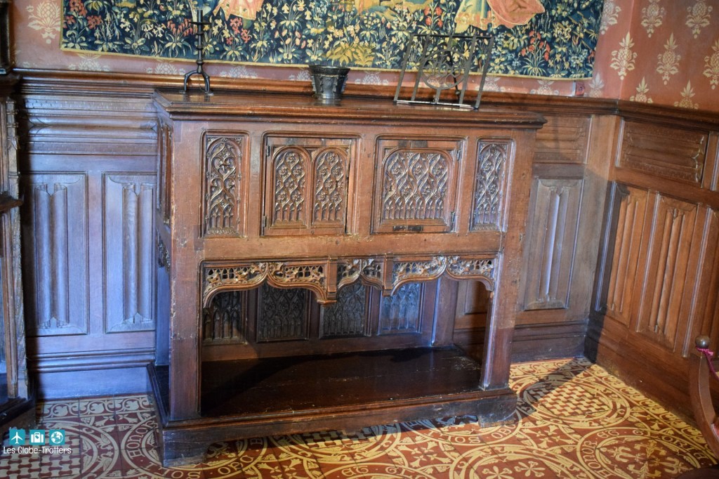 Nous arrivons ensuite au dernier étage du château ou se trouve la salle des Preux, la Garde Robe, le cabinet d’art sacré (et pour les enfants une salle de lecture).