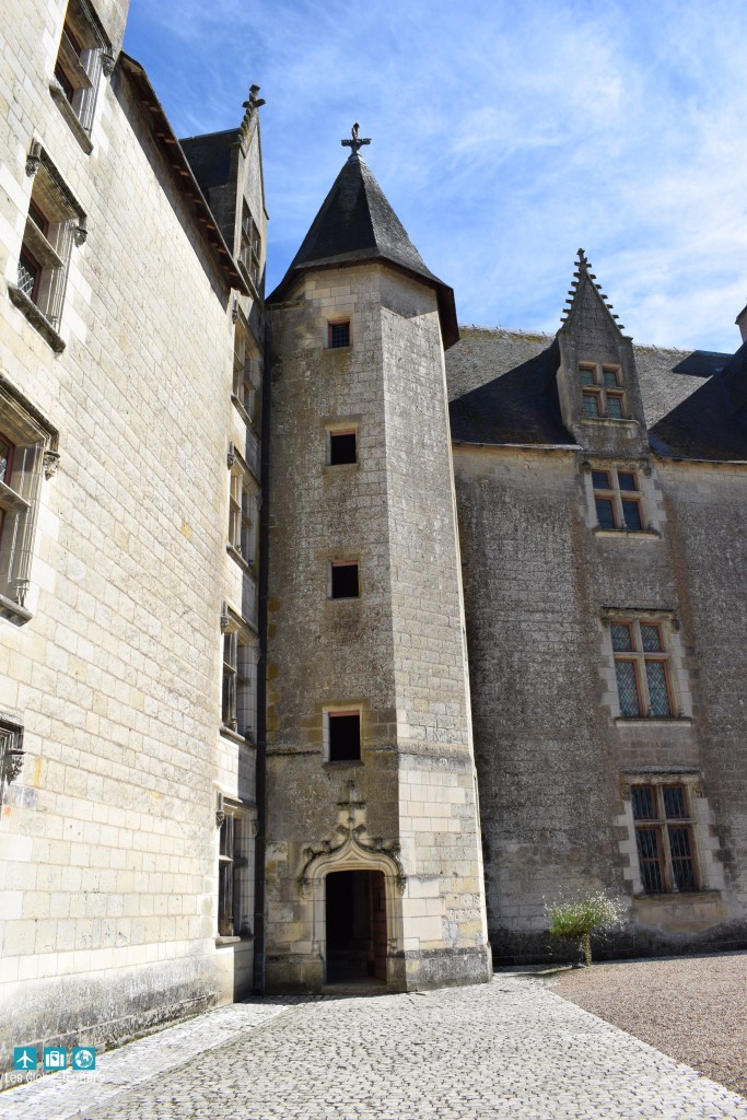 L’histoire du château : En 1465, Louis XI décide la construction d’un château neuf à Langeais. Son architecture reflète les changements qui s’opèrent au tournant des XVe et XVIe siècles : côté ville, la façade possède tous les attributs du château fort : grosses tours, pont-levis, chemin de ronde sur mâchicoulis. Pourtant l’édifice n’est plus une véritable forteresse. Côté cour, la façade répond à ce qu’attend désormais un roi ou un grand seigneur de sa résidence : être un lieu de séjour agréable, ouvert sur l’extérieur par de belles fenêtres. Les travaux sont confiés à Jean Bourré, fidèle conseiller du roi, et à Jean Briçonnet, autre proche du roi et alors maire de Tours. Dès juillet 1466, Louis XI cède le château à son cousin, Dunois, fils du compagnon d’armes de Jeanne d’Arc.
