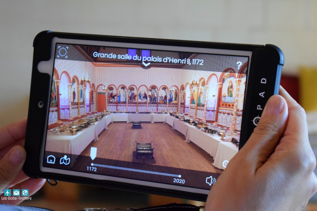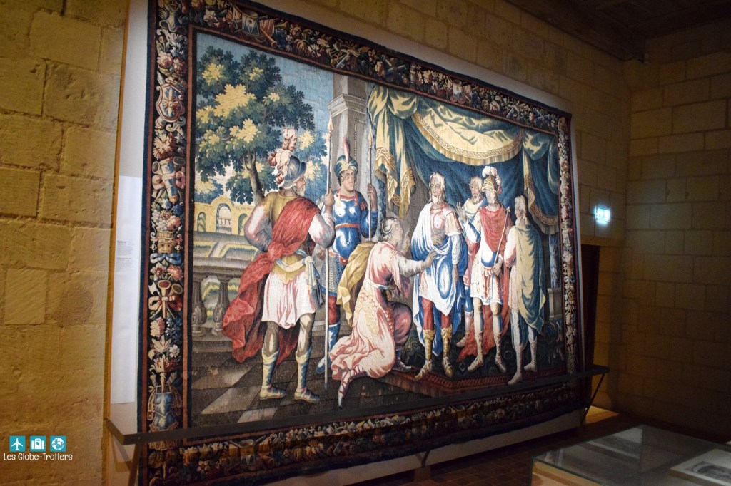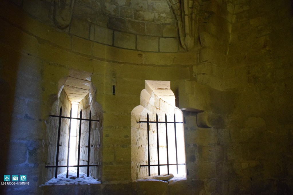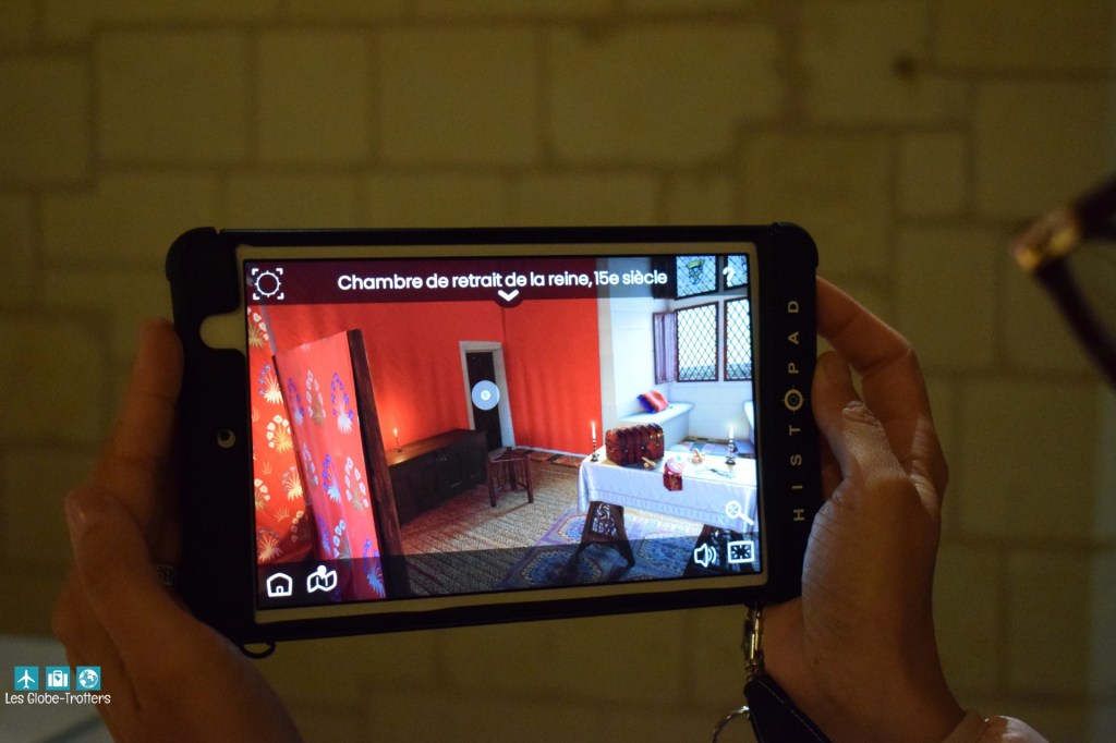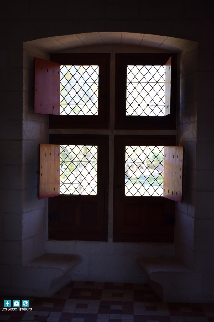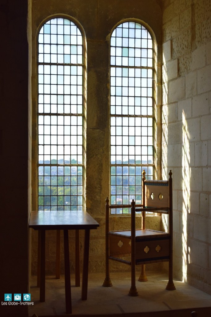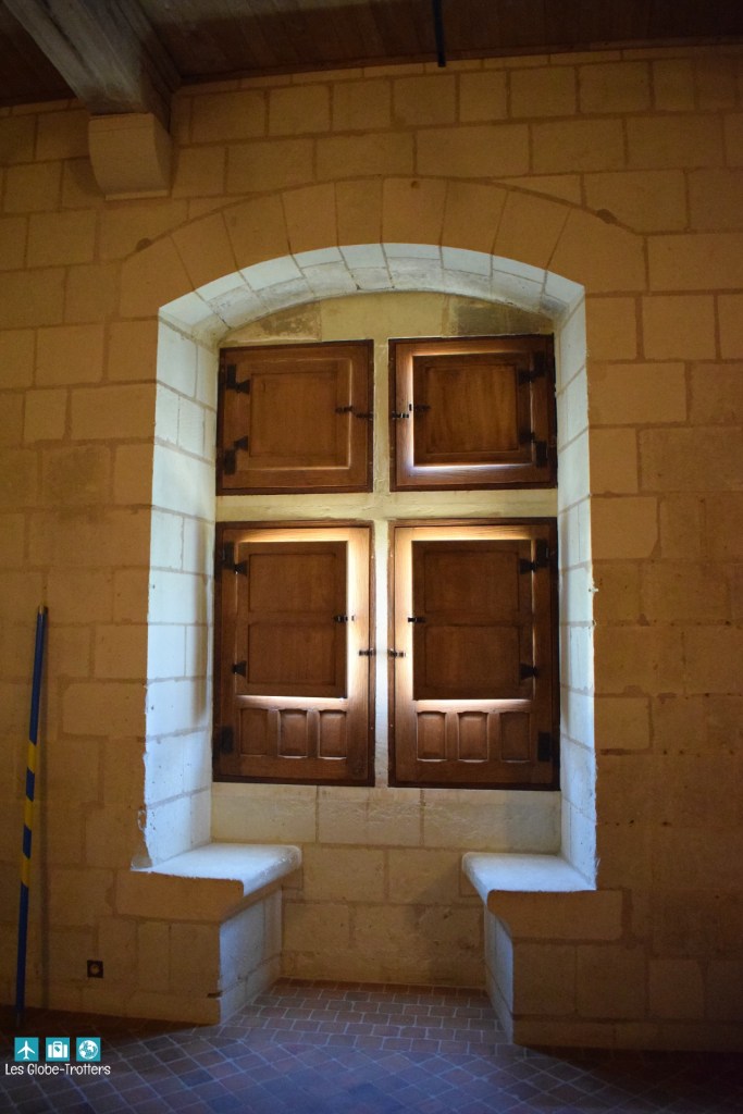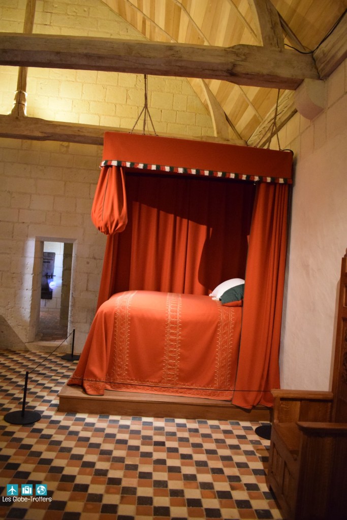 Après quelques photos de la ville prise depuis l’emplacement de la tour du trésor, nous nous dirigeons vers les logis royaux. Vers 1370, le duc Louis 1er d’Anjou entreprend la construction des logis. De cet ensemble, il ne nous reste plus que l’aile sud, qui abritait un auditoire à son extrémité. Au temps de Charles VII, l’ensemble prend sa configuration définitive de trois ailes autour d’une cour. L’auditoire devient la grande salle du château, plus connue sous le nom de « salle de la Reconnaissance ». Le reste de l’aile sud était occupé par les appartements de Charles VII et son épouse Marie d’Anjou, logés au premier étage. On y trouve l’essentiel : une chambre de parement et une chambre à coucher, les cabinets et lieux d’aisance. Les pièces de service et la salle à manger sont au rez-de-chaussée. La reine, principale occupante pendant plus de 25 ans (1435-1461), y fera faire de nombreux aménagements.
