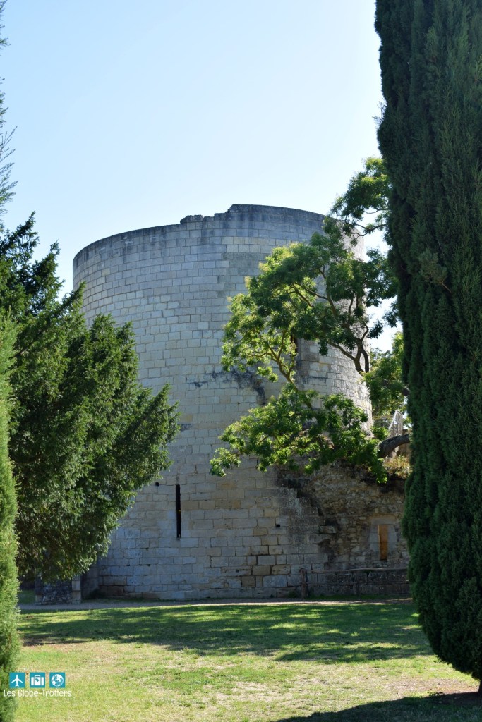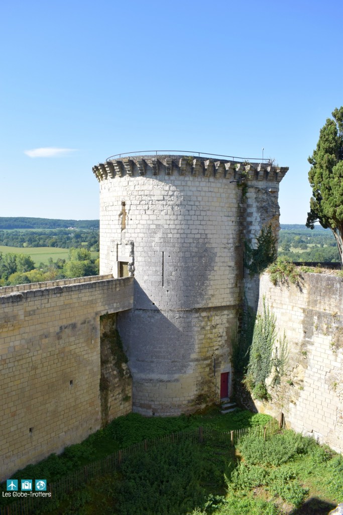 Direction ensuite la tour de Coudray. En 1205, après un siège de neuf mois, Philippe Auguste s’empare de la Forteresse de Chinon. Il fait construire une grande tour circulaire, la tour du Coudray. En 1308, celle-ci devient la prison de dignitaires Templiers, dont Jacques de Molay, le dernier grand maître de l’ordre. Plusieurs graffiti témoignent encore de cet événement historique. Pour nous cette tour est aussi un formidable poste d’observation pour admirer Chinon et ses environs.