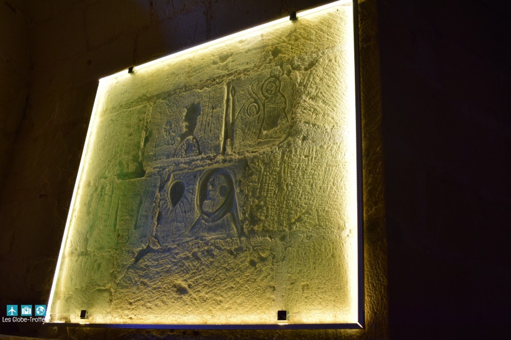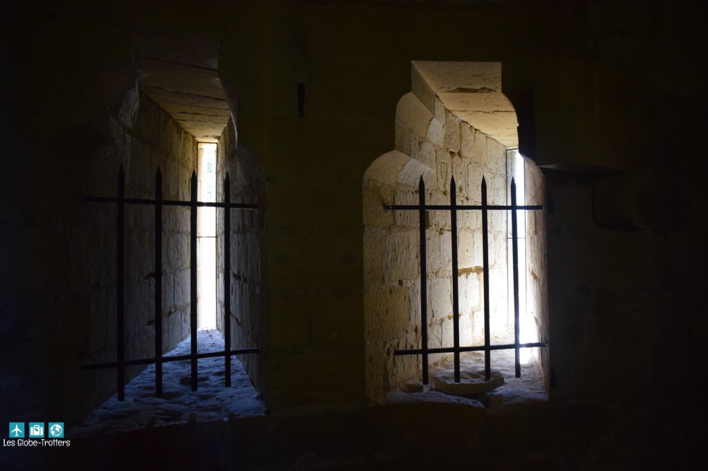 Nous observons et visitons ensuite la tour d’Argenton. En 1477, le roi Louis XI confie la Forteresse de Chinon à Philippe de Commynes, seigneur d’Argenton. Celui-ci renforce l’angle nord-ouest du château du Milieu en construisant une tour capable de résister aux nouvelles armes à poudre. Ses murs font cinq mètres d’épaisseur et des canonnières sont percées jusqu’au niveau le plus bas, à hauteur des fossés. Sa terrasse sommitale est quant à elle située de plain-pied avec la cour du château du Milieu : cette tour moins haute que les autres est aussi moins fragile. La tour est aménagée en prison au XVIIe siècle, comme en témoignent les graffiti qui subsistent sur les murs.