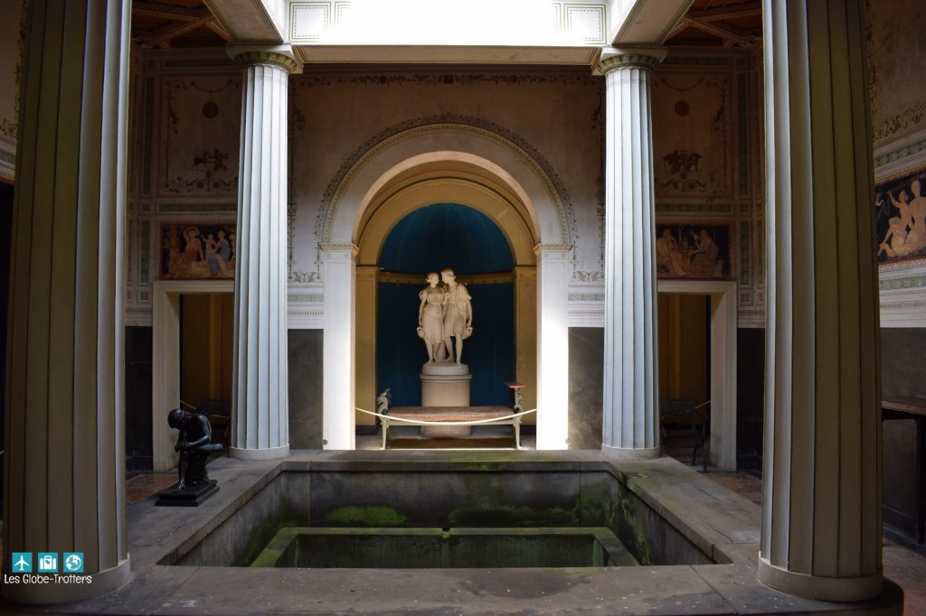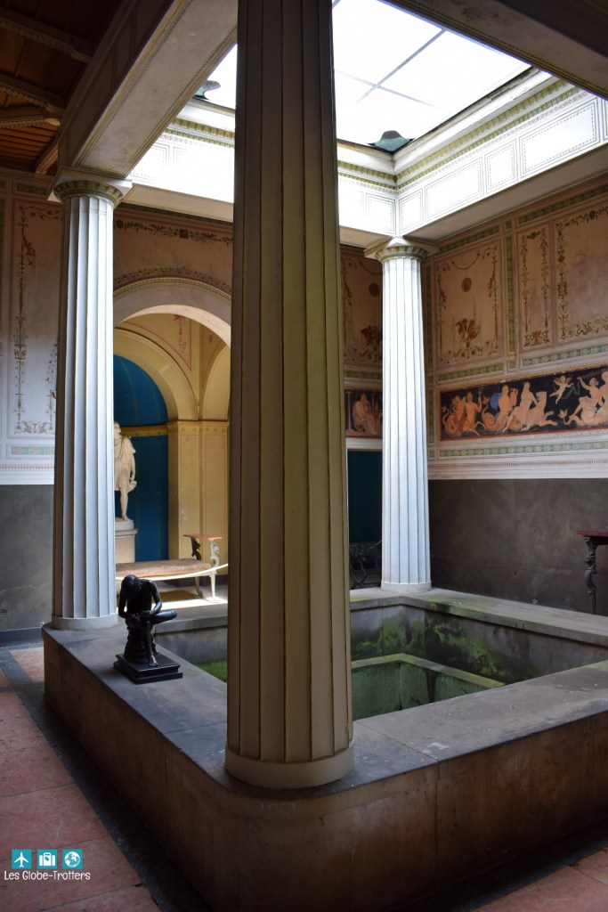 L’ensemble architectural conçu par Karl Friedrich Schinkel et son élève Persius entre 1829 et 1844 rassemble une maison de campagne italienne, avec arcades, thermes romains et un temple antique. L’intérieur des thermes, d’un grand raffinement, offre au visiteur une reconstitution fidèle des appartements de la Rome antique : statues, mosaïques ou encore peintures murales. Le vestibule avec sa baignoire en jaspe précède l’atrium et son impluvium ainsi que son caldarium. Ces thermes n’ont jamais servi aux bains, mais constituaient un souvenir du séjour de Frédéric-Guillaume IV en Italie.
