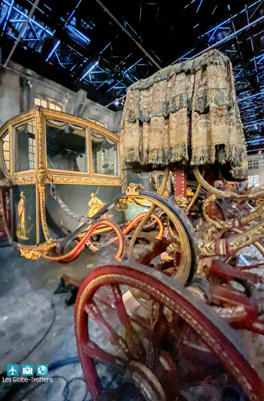 Juste à côté, une autre forme de récit prend le relais — celle du mouvement. Le musée de la voiture, installé dans les anciennes écuries du château, dévoile une collection rare de carrosses, de traîneaux, de vélocipèdes et des toutes premières automobiles. Ici, l’histoire avance sur roues.