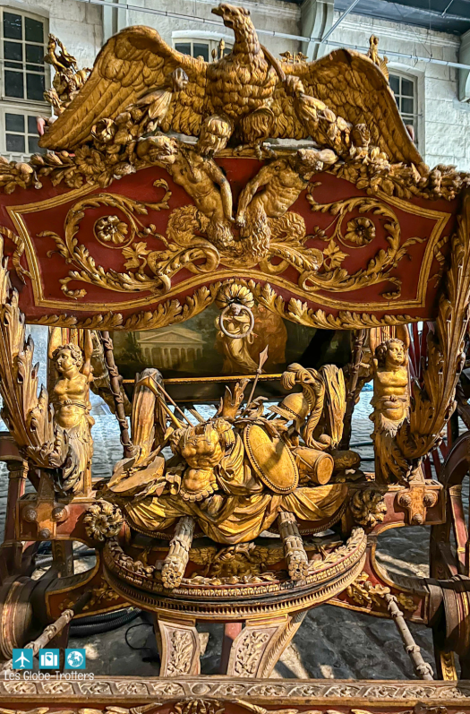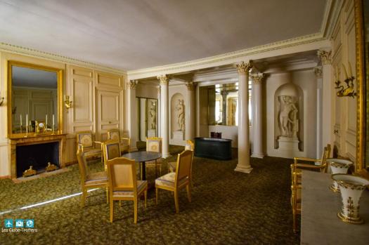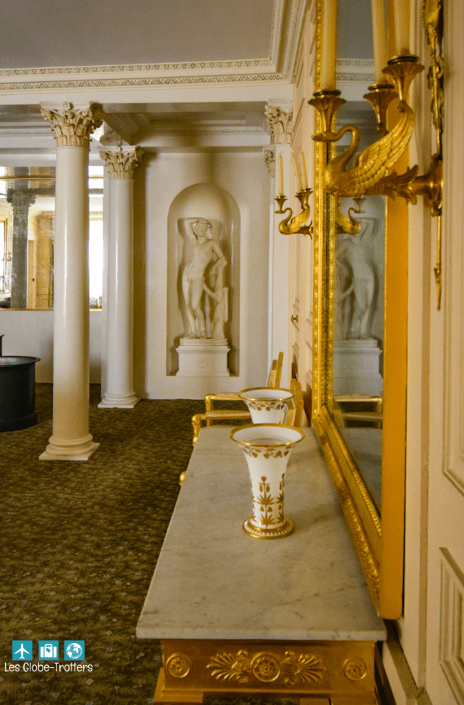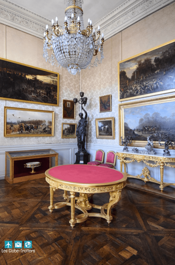 Enfin, les salons de l’Empire, plus solennels, prennent des accents théâtraux : velours pourpre, aigles dorés, portraits en pied. Le décor affirme la grandeur, la puissance, mais aussi un certain goût du spectacle. C’est un lieu qui parle en silence. On y entend presque le froissement des crinolines, les éclats de rire mondains, les murmures diplomatiques.