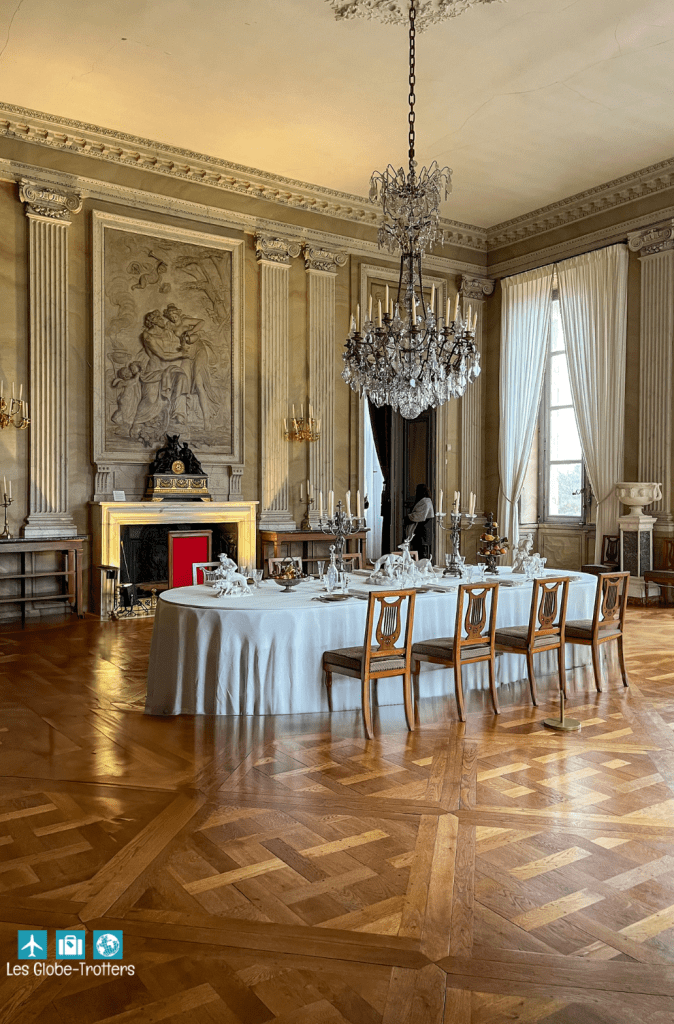 Dès que l’on franchit le seuil, le château dévoile un enchaînement harmonieux de salles, d’antichambres, de galeries. L’architecture néoclassique offre de longues perspectives, des volumes clairs, une sobriété toute impériale.