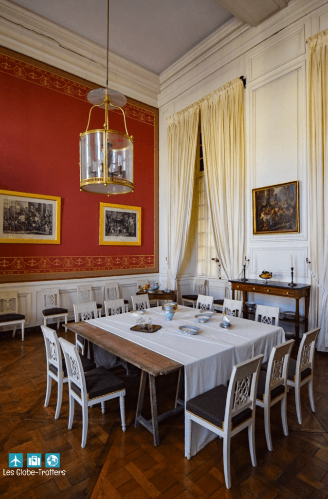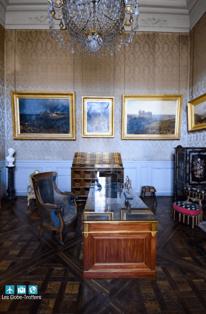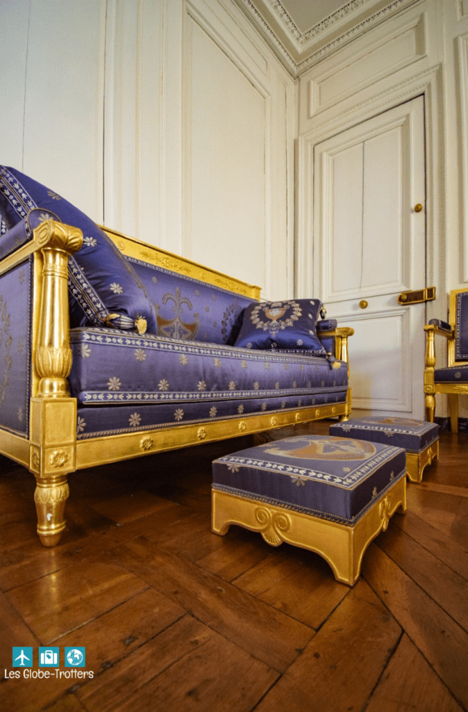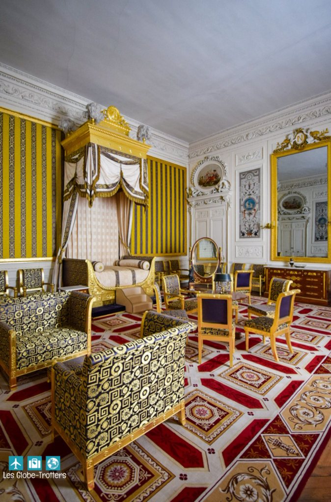 La chambre du roi conjugue grandeur et intimité. Rien n’y est ostentatoire, mais tout y est raffiné : tentures, paravents brodés, commodes précieuses… autant d’échos d’un pouvoir qui s’exprimait dans le détail. Le cabinet de travail, plus sobre, respire la concentration. On y imagine Louis XVI penché sur ses cartes de chasse ou Napoléon annotant des lettres d’une écriture nerveuse. Plus loin, la bibliothèque offre le silence feutré des lieux où se trament les décisions.