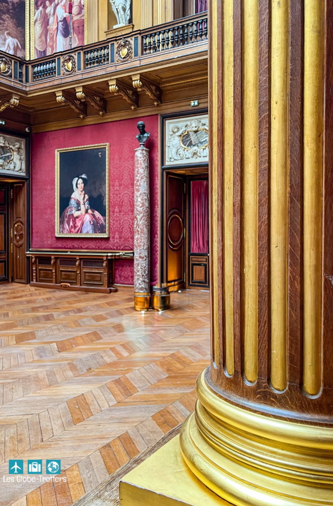 Les salons s’enchaînent comme dans un opéra silencieux. Le salon doré, aux moulures éclatantes, semble prêt à accueillir une valse de Chopin. La bibliothèque, tapissée de bois sombre et de savoirs endormis, appelle au murmure. Les tapisseries, les tableaux, les lustres — tout évoque un monde suspendu entre opulence et harmonie.