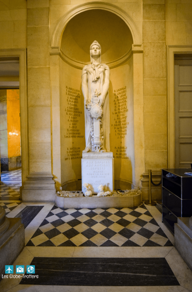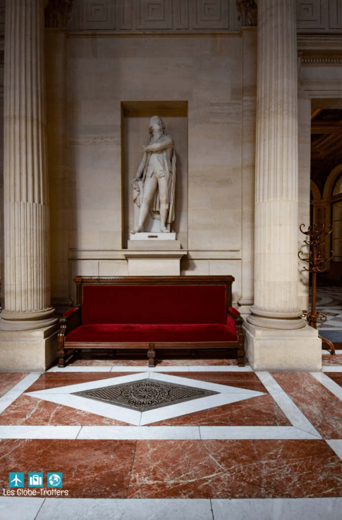 La visite permet aussi d’admirer des chefs-d’œuvre artistiques parfois méconnus : la bibliothèque richement décorée, la salle des pas perdus, la galerie des fêtes… Partout, les fresques murales, les plafonds peints et les statues rendent hommage à l’histoire de France et à ses grands hommes (et femmes, timidement).