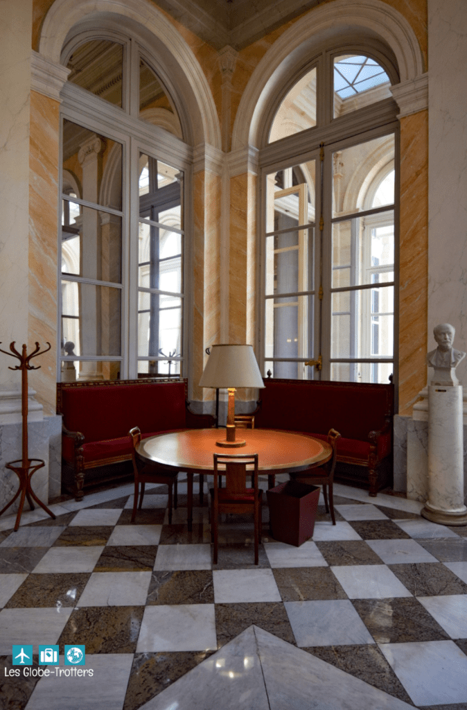 Le Salon Delacroix, quant à lui, mérite un arrêt contemplatif. Ses peintures monumentales rendent hommage aux grands principes fondateurs de la nation. Puis vient la Bibliothèque, véritable joyau feutré orné de boiseries, de globes anciens et d’une verrière spectaculaire : on y devine l’importance du savoir dans l’exercice du pouvoir.