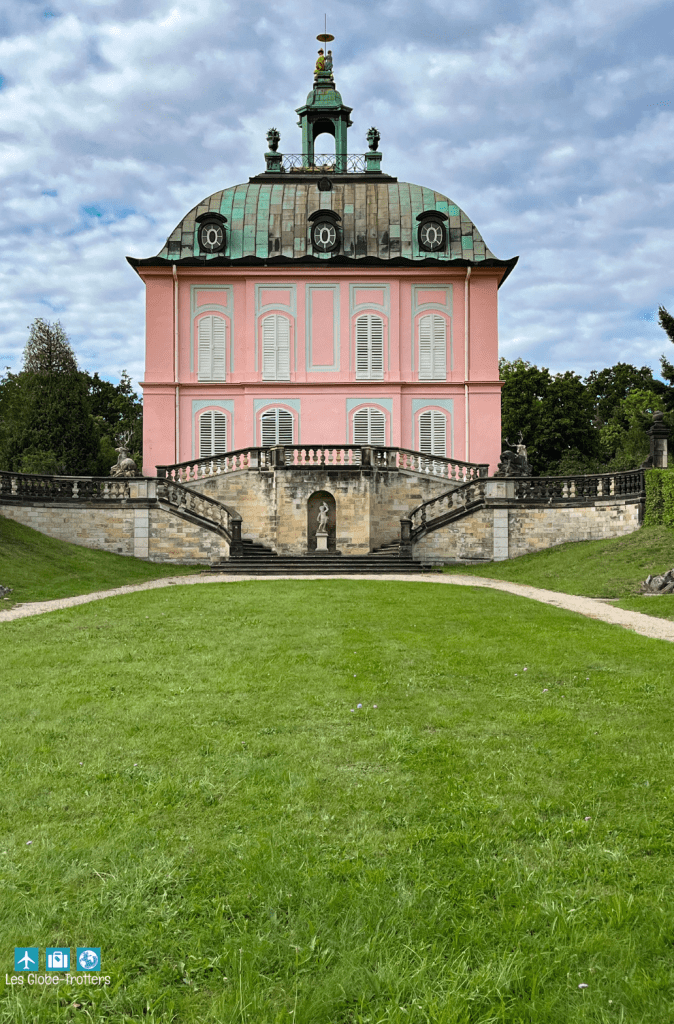 À quelques pas, le Fasanenschlösschen ajoute une note rococo pleine de charme. Ce petit pavillon, accompagné de son port miniature et d’un phare ornemental, servait de lieu d’agrément et de fantaisie princière.